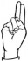 На ћирилици написано СЕРГЕЈ КОЈОВИЋ састоји се из 13 слова [?]. Исписано ћириличном једноручном азбуком за глувонеме: